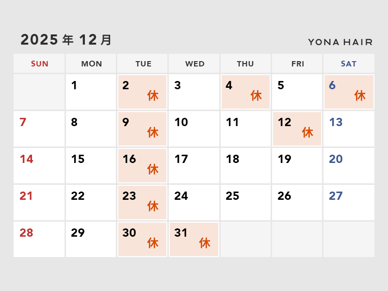 ありがたいことに年内ほぼ埋まってきましたので、12月のお休みもあわせてご確認いただけたらと思います。